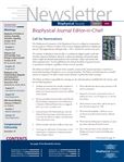 The Biophysical Society Newsletter (ISSN 0006-3495) is published twelve times per year, January- December, by the Biophysical Society, 11400 Rockville Pike, Suite 800, Rockville, Maryland 20852. Distributed to USA members and other countries at no cost. Canadian GST No. 898477062. Postmaster: Send address changes to Biophysical Society, 11400 Rockville Pike, Suite 800, Rockville, MD 20852. Copyright © 2015 by the Biophysical Society. Printed in the United States of America. All rights reserved.